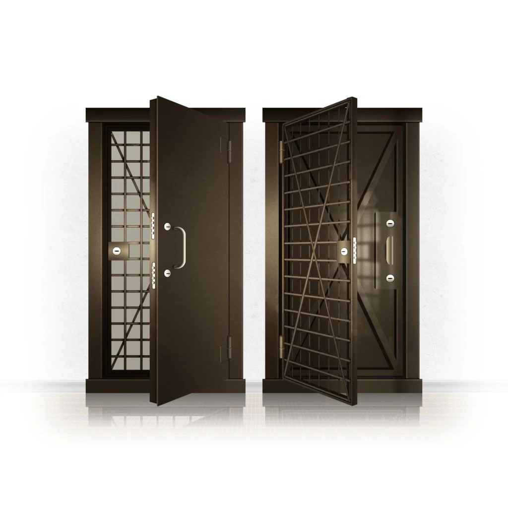 Металлические двери КХО и КХН представляют собой входные блоки, обладающие высоким уровнем взломостойкости и состоят из трех основных элементов: усиленного каркаса, сплошного металлического полотна и решетчатой двери. Дверной блок изготавливается из стального уголка 100*100 мм. Места крепления блока к стене цементируются и закрываются стальными наличниками шириной 40 мм. Крепеж заходит вглубь стены на 80 мм. В конструкции внешней створки монтируются ребра жесткости, для обшивки используется сталь толщиной не менее 3 мм. Внутренняя решетка изготавливается из прутка диаметром 16 мм. Размер ячеек решетки должен составлять не более 15 на 15 см. В точках пересечения прутья надежно приваривают друг к другу. В КХО и КХН необходимо поддерживать определенную температуру и влажность. Для этого внутреннее пространство глухой двери заполняется теплоизоляционным материалом, а по периметру двери приклеивается уплотнитель. Такие двери оборудуются замками с повышенным уровнем взломостойкости. Специализированные двери КХО и КХН в Ельне могут быть оснащены сигнализацией, в конструкции могут быть проушины для навесного замка и элементами для опечатывания. Если идет речь о двери в комнату хранения оружия, в створке оборудуется окно для выдачи оружия и спец. средств, которое накрывается стальной дверцей.