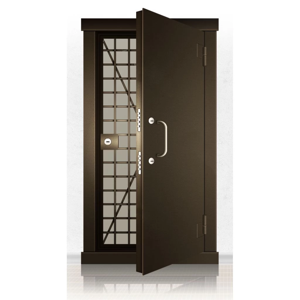 Металлические двери КХО и КХН представляют собой входные блоки, обладающие высоким уровнем взломостойкости и состоят из трех основных элементов: усиленного каркаса, сплошного металлического полотна и решетчатой двери. Дверной блок изготавливается из стального уголка 100*100 мм. Места крепления блока к стене цементируются и закрываются стальными наличниками шириной 40 мм. Крепеж заходит вглубь стены на 80 мм. В конструкции внешней створки монтируются ребра жесткости, для обшивки используется сталь толщиной не менее 3 мм. Внутренняя решетка изготавливается из прутка диаметром 16 мм. Размер ячеек решетки должен составлять не более 15 на 15 см. В точках пересечения прутья надежно приваривают друг к другу. В КХО и КХН необходимо поддерживать определенную температуру и влажность. Для этого внутреннее пространство глухой двери заполняется теплоизоляционным материалом, а по периметру двери приклеивается уплотнитель. Такие двери оборудуются замками с повышенным уровнем взломостойкости. Специализированные двери КХО и КХН в Ельне могут быть оснащены сигнализацией, в конструкции могут быть проушины для навесного замка и элементами для опечатывания. Если идет речь о двери в комнату хранения оружия, в створке оборудуется окно для выдачи оружия и спец. средств, которое накрывается стальной дверцей.